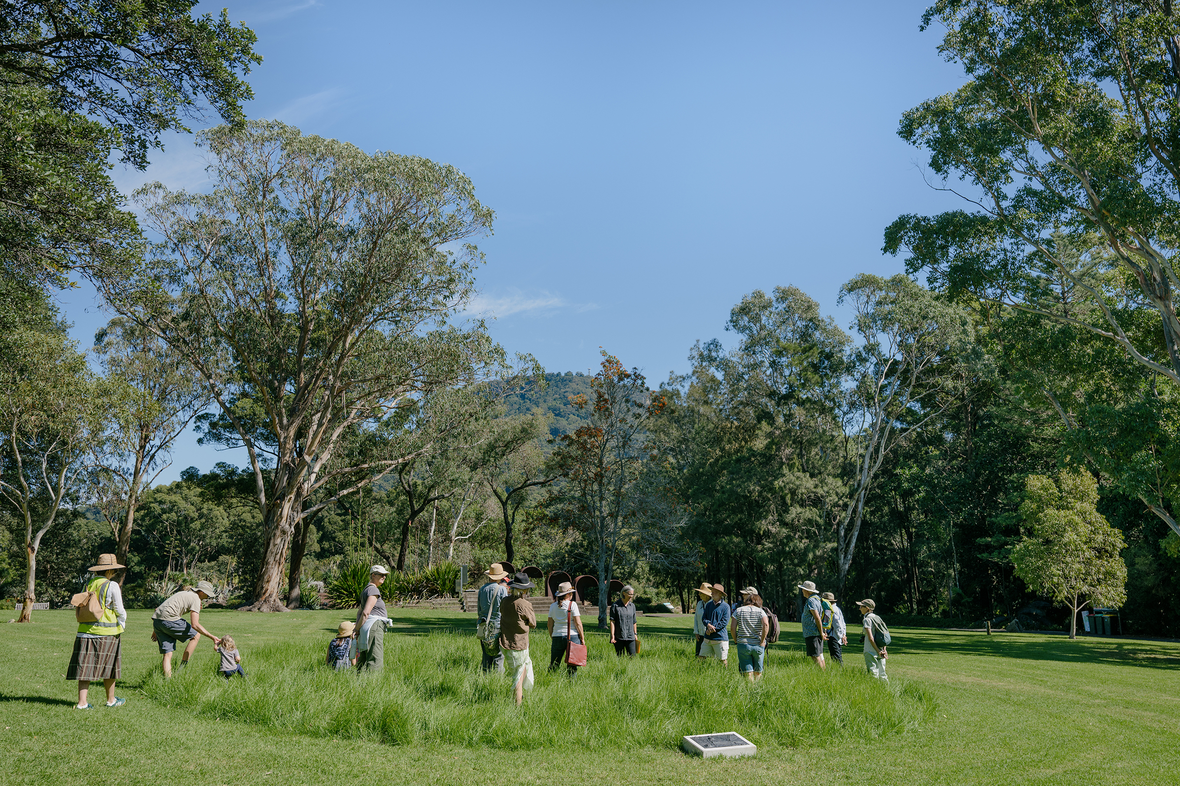 Circuits of solar descent involves a walking series, un-mown circles of grass as gathering points, and bronze sculptures bearing impressions of Illawarra-based plant life from across timescales. Walks led by local plant specialist explore the ecologies of the Botanic gardens as well as remnant bushland within the Kiera Green Corridor and the Illawarra Lowlands Grassy Woodlands. Assembling sculpture, storytelling, and social engagement, the work highlights how plant life embodies ancient temporalities and fosters future environmental care.