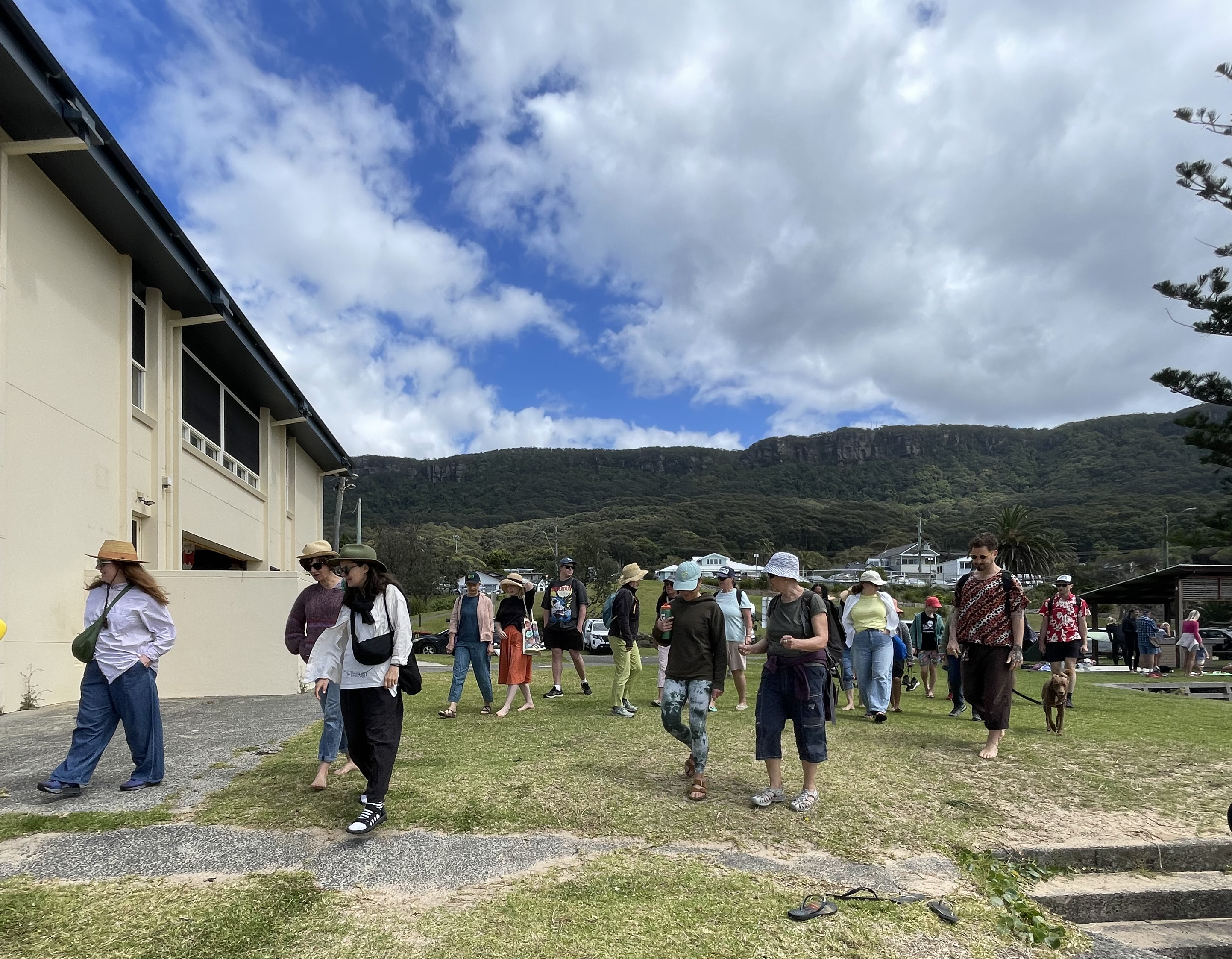 The Deep Time Coastline walking series invited participants to experience the Illawarra escarpment and coastline on Dharawal land through movement, conversation, and multisensory engagement. These walks unfolded as situated encounters with the region’s stratigraphic layers, ecologies, and cultural histories—tracing connections between ancient geological formations and contemporary climate challenges. Led by artists, curators, and knowledge holders, the series created space for shared learning and reflection in situ, foregrounding the ethical and aesthetic dimensions of walking as a collective method in place. Curated and produced by Bianca Hester and Bronwyn Bailey-Charteris in collaboration with Matt Poll, the walking series offered an embodied approach to understanding and caring for this complex landscape, cultivating attentiveness to its deep-time narratives and precarious futures.