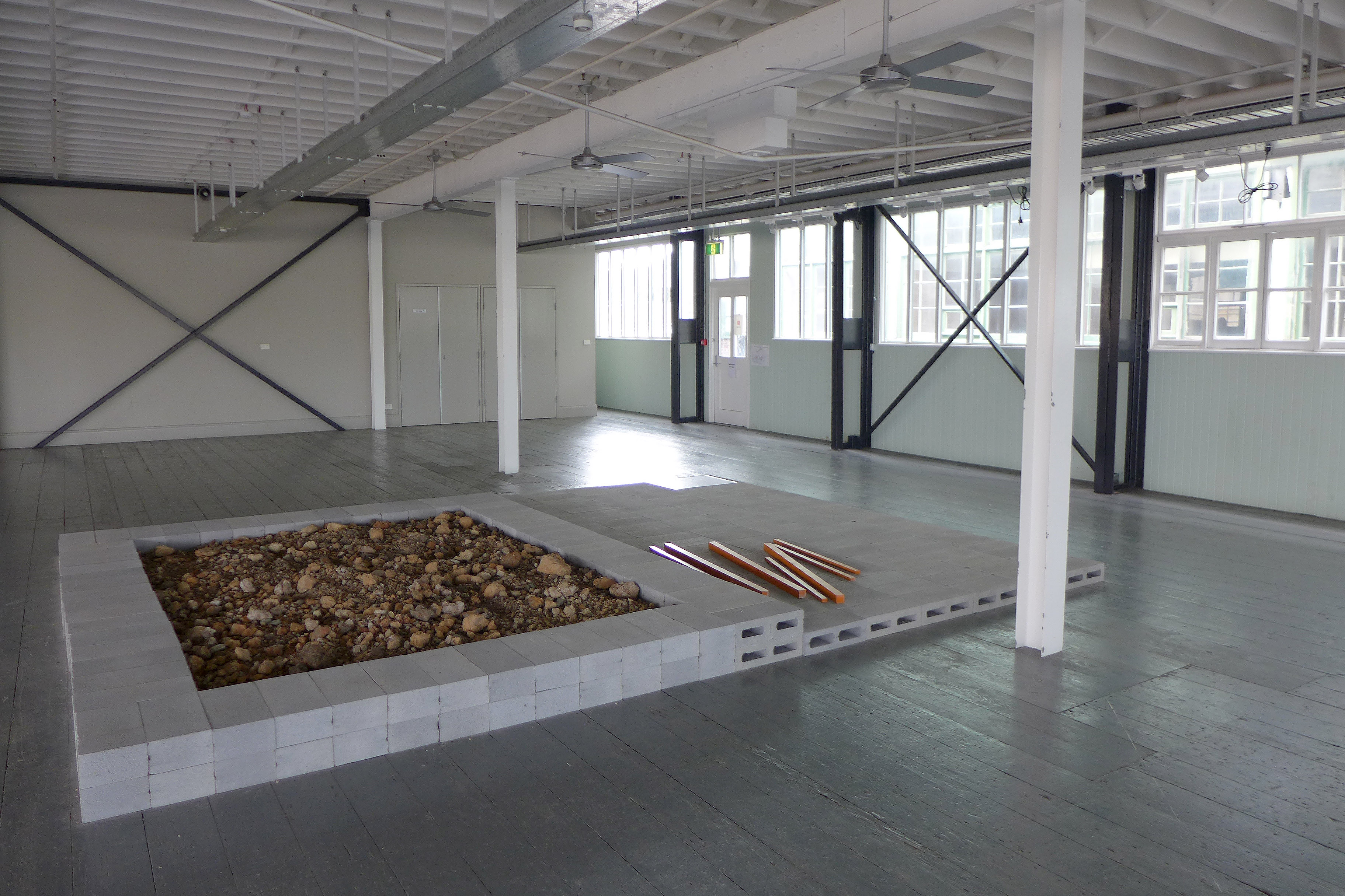 Three tonnes of soil was removed from the site at Hyde Park on 21 March 2014, and was temporarily relocated within the installation on Waremah (Cockatoo Island) where it remained until Monday, 9 June 2014, after which time it was returned to the park. This process of removal revealed the profile of the soil in the exact location, exposing the stratigraphic layers within the park’s soil structure. The hole was in Hyde Park was accessible for viewing 24 hours a day.