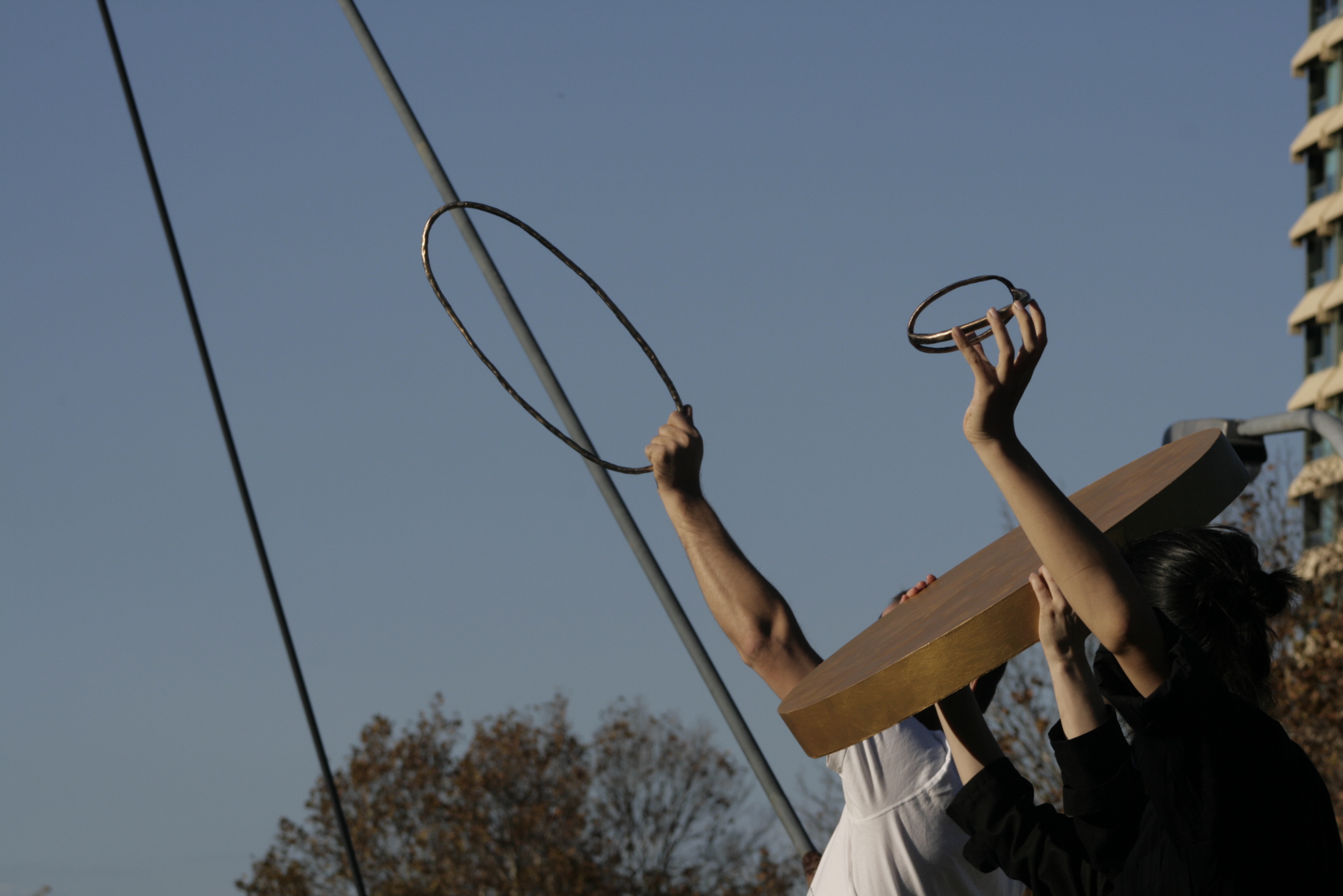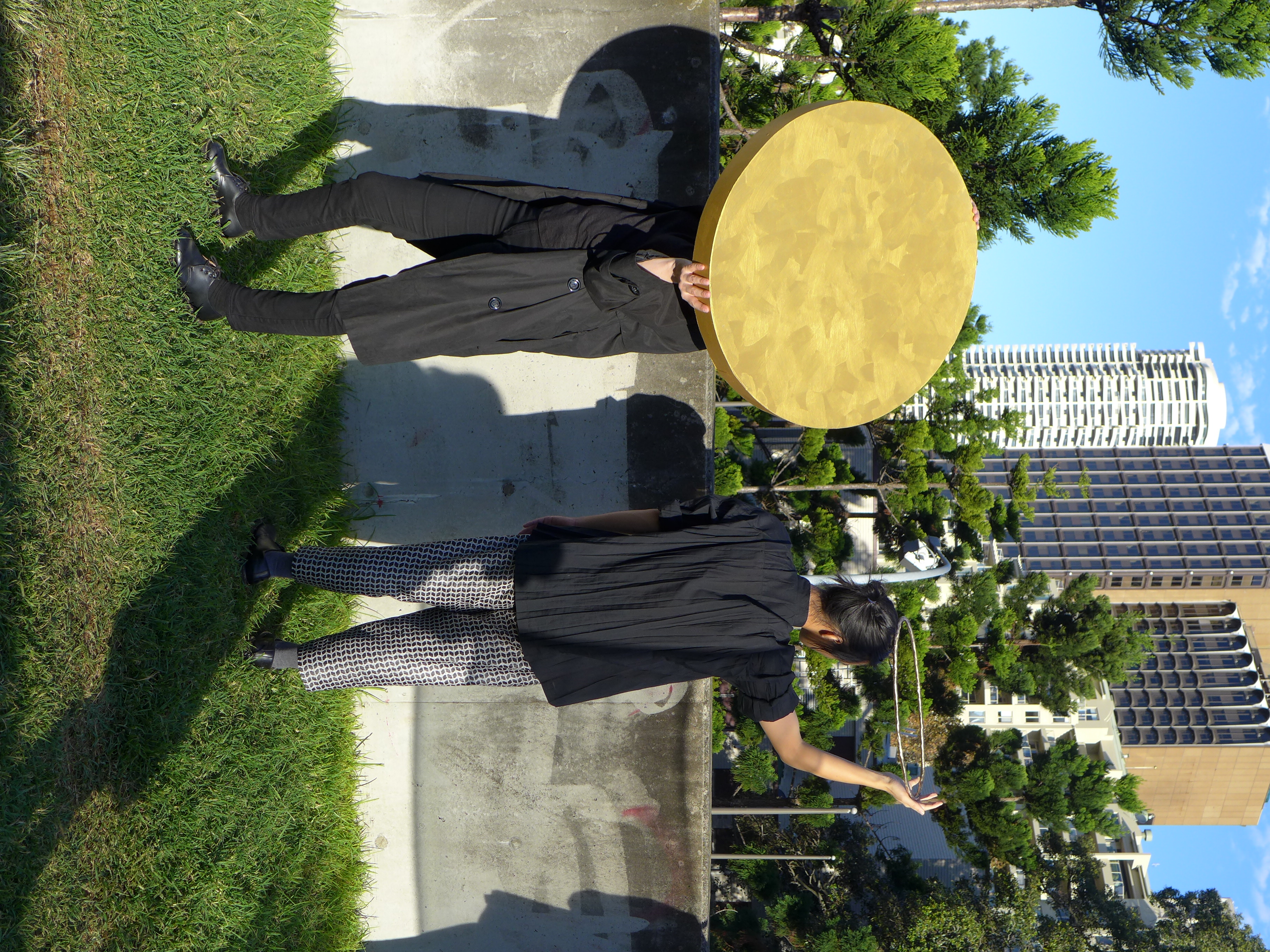 A set of objects was fabricated for the purpose of collectively being held towards evening’s diminishing westerly light as a series of public events. This performance engaged the sun at a particular moment in its trajectory across the sky, to witness the recurring relationship it makes to the materials of the earth that stand in its fleeting pathway. This occurred with the participation of with Stuart Bailey, Ivan Cheng, Mark Shorter, Salote Tawale and Sarah Rodigari, Jess Olivieri, Helen Walter, Anneke Jaspers, Naomi Derrick, Kevin Platt, Gary Warner, Laure Stephen (photography).