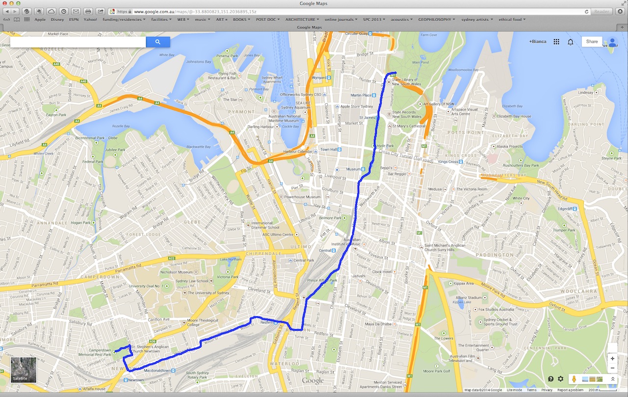 Prior to colonization, the area that is now known as Western Sydney was covered in Turpentine Ironbark forest. This forest was almost totally removed for grazing and firewood, yet tiny pockets of remnant trees remain including a small cluster adjacent to a factory on Roberts Road in Greenacre and along a ridgeway in Hurlstone Park. This work is a proposition to map the area of land where the forest stood through the process of walking, where the walking temporarily marks out the forest’s imagined edge. What is revealed during the walk are the manifold boundaries that materialise and express the cadastral grid. This grid signifies an ongoing process of colonization and privatisation - which will perpetually interrupt the walk’s (imagined) continuity.