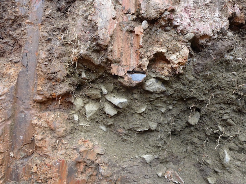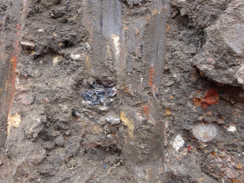 Three tonnes of soil was removed from the site at Hyde Park on 21 March 2014, and was temporarily relocated within the installation on Waremah (Cockatoo Island) where it remained until Monday, 9 June 2014, after which time it was returned to the park. This process of removal revealed the profile of the soil in the exact location, exposing the stratigraphic layers within the park’s soil structure. The hole was in Hyde Park was accessible for viewing 24 hours a day.